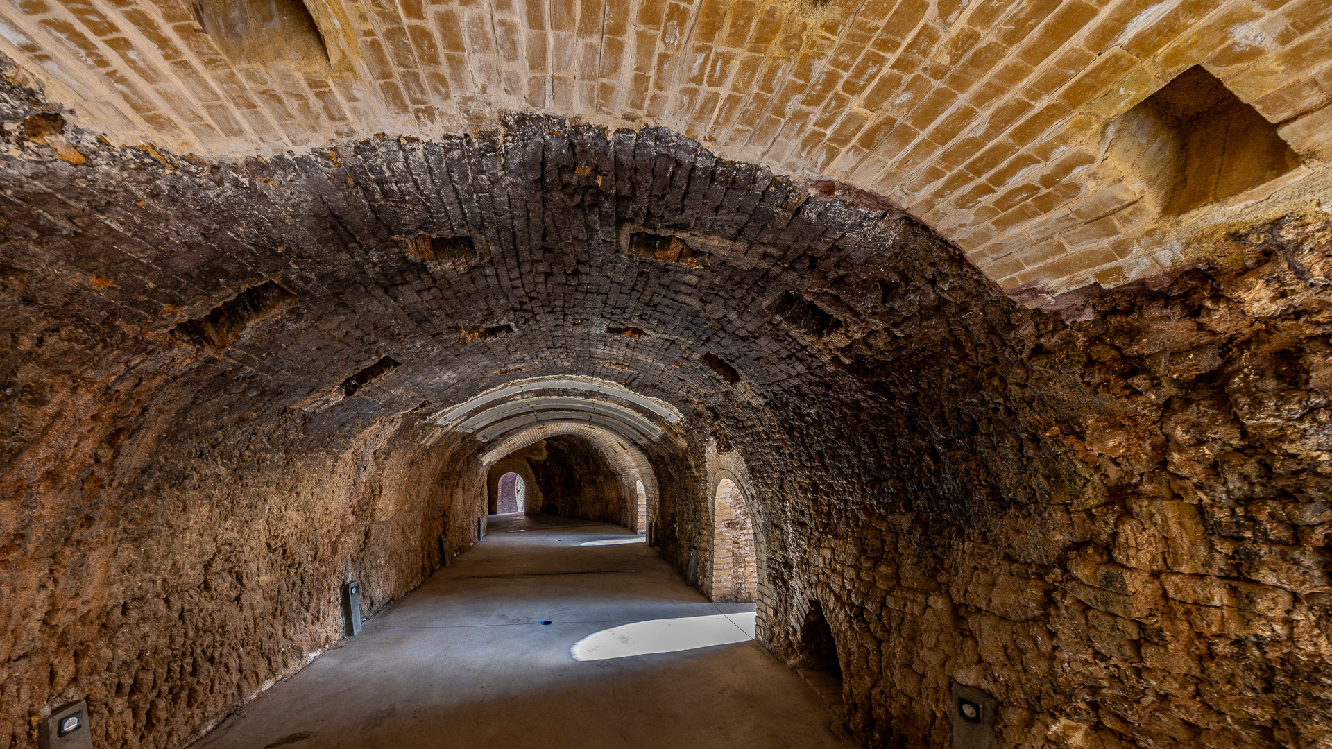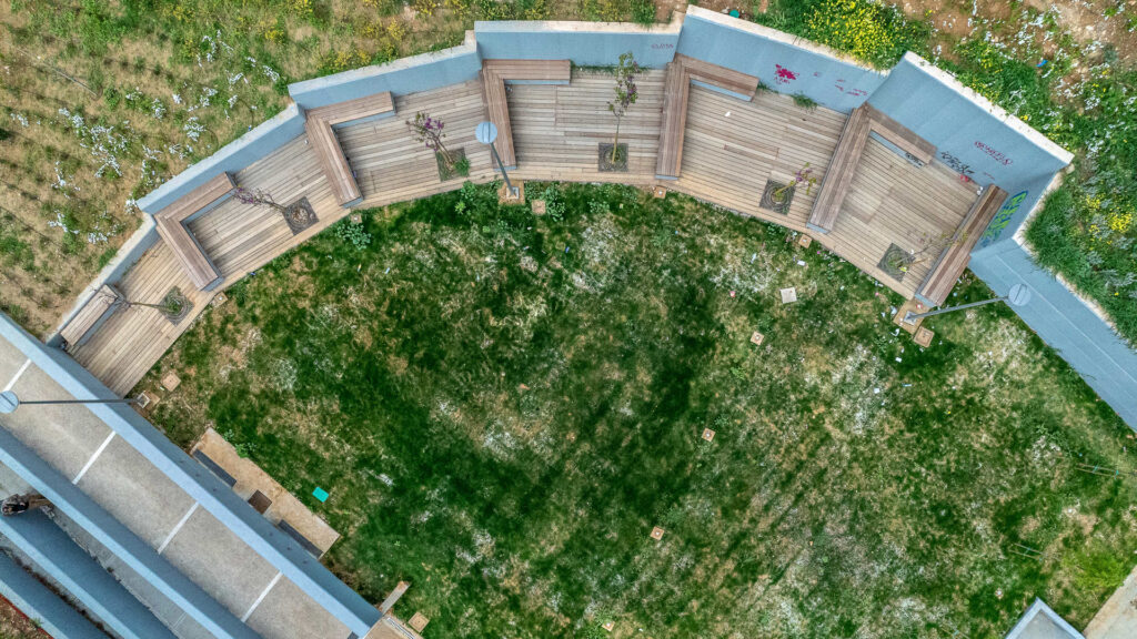 Στον περιβάλλοντα χώρο διαμορφώνεται πλατεία υπαίθριων εκδηλώσεων, διαδρομές περιπάτου, φυτεύσεις με είδη μεσογειακής χλωρίδας, καθώς και νέες υποδομές φωτισμού, άρδευσης και αποστράγγισης. Όλες οι επεμβάσεις υλοποιούνται με σεβασμό στην αυθεντική μορφολογία και στα υλικά του μνημείου, εφαρμόζοντας σύγχρονες τεχνικές ενίσχυσης και αναστρέψιμες μεθόδους συντήρησης, εξασφαλίζοντας τη στατική επάρκεια, τη λειτουργικότητα και τη μακροχρόνια βιωσιμότητα του συγκροτήματος.