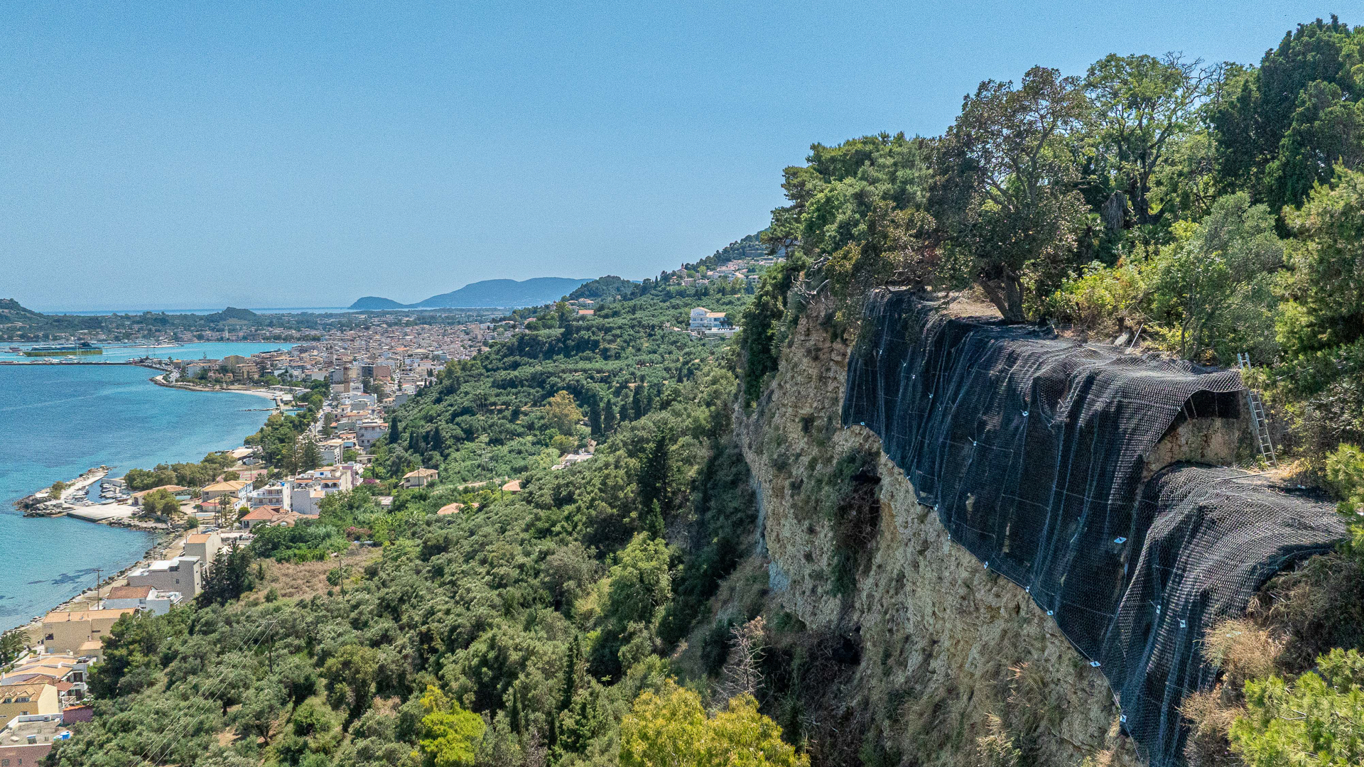 Έργα προστασίας από κατολίσθηση των πρανών στη θέση ‘Κόκκινος Βράχος’ στο Ακρωτήρι Ζακύνθου μετά τον σεισμό της 26ης Οκτωβρίου 2018
