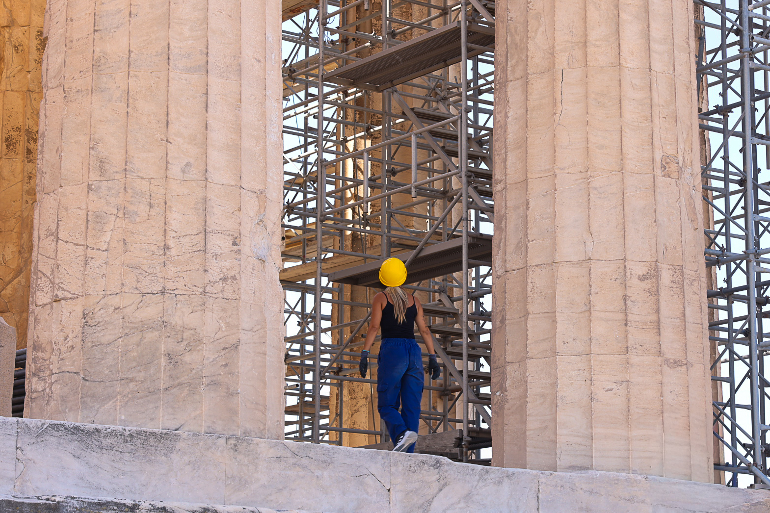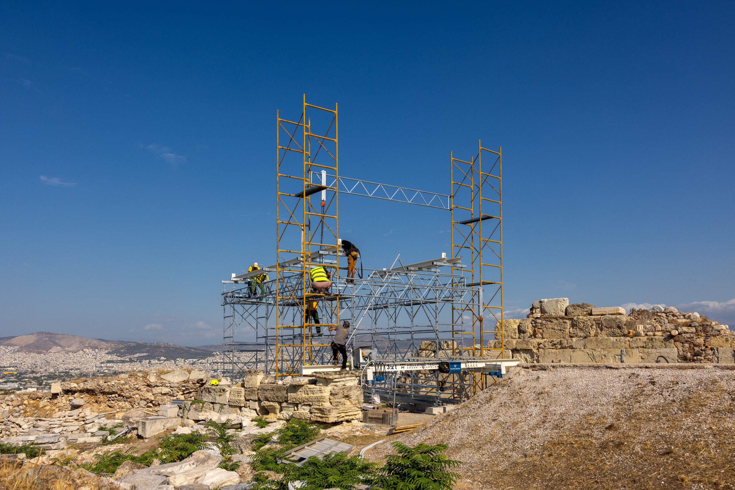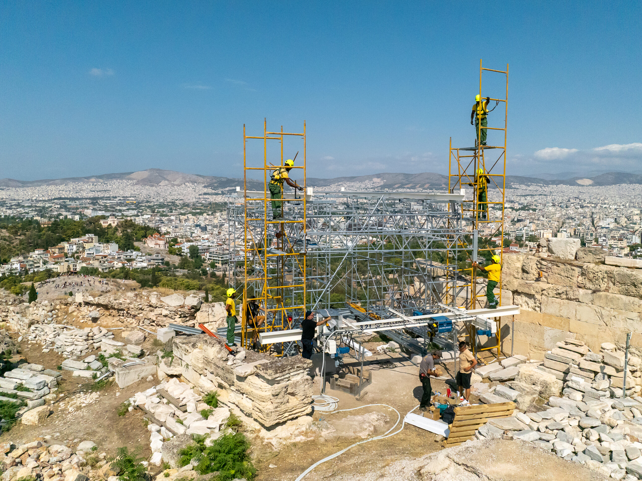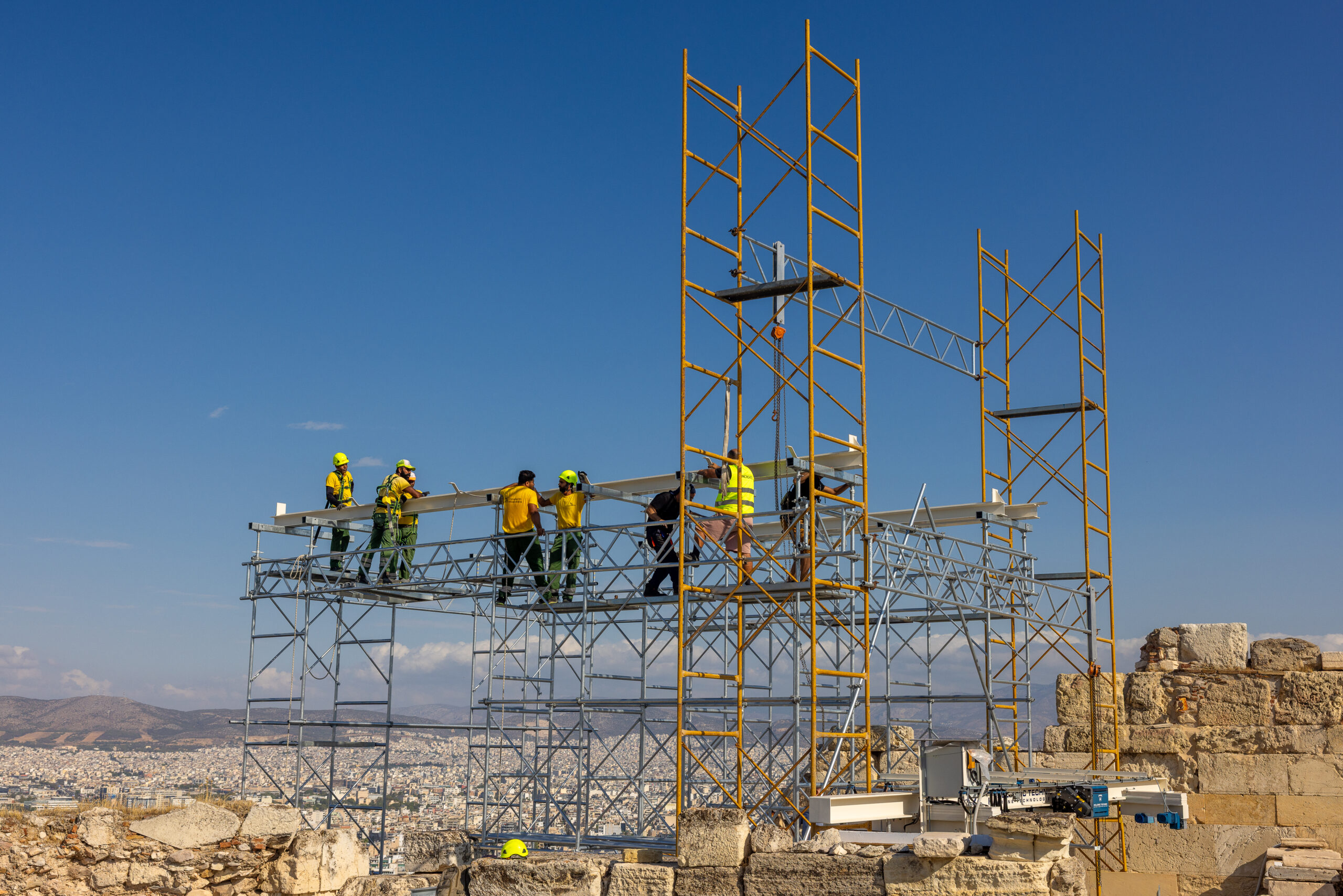 Κατασκευή γερανογέφυρας επί μεταλλικού ικριώματος για την αποκατάσταση της περιοχής Β15 του Βόρειου τείχους της Ακρόπολης των Αθηνών